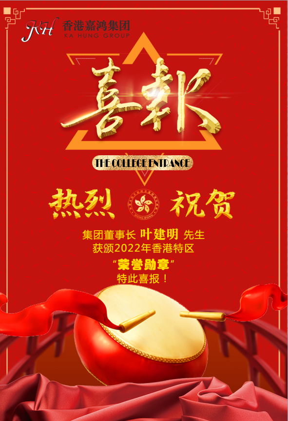 香港特區(qū)政府7月27日公布了2022年授勛名單,全國(guó)政協(xié)委員、嘉鴻集團(tuán)董事長(zhǎng)葉建明先生獲頒香港特區(qū)政府“榮譽(yù)勛章”!