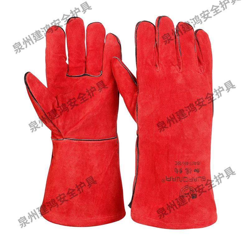 隔熱焊工防護(hù)手套,梔形拇指,牛皮加強(qiáng)掌面,加長(zhǎng)袖口長(zhǎng)14cm,可有效防護(hù)機(jī)械風(fēng)險(xiǎn),防火防燃、抗傳導(dǎo)熱與接觸熱,同時(shí)可防止小滴熔化金屬濺射。