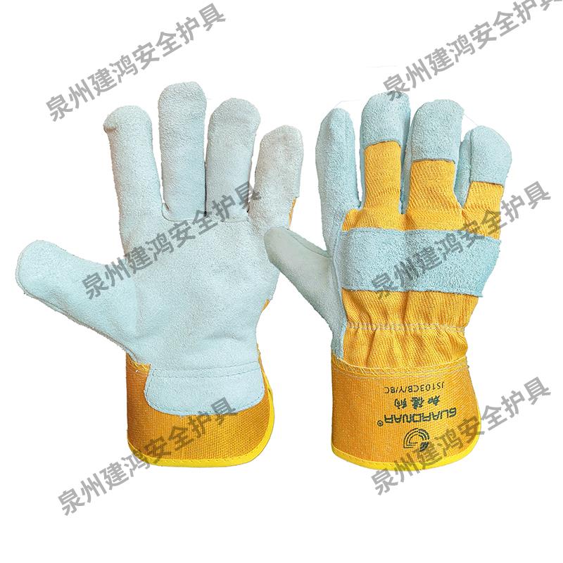 1)手掌:本色牛二層 手背:橘色條紋布 袖口:條紋布膠袖耐磨耐高溫,加厚防滑.舒適透氣耐撕裂。